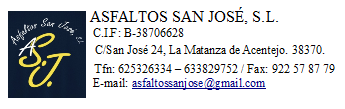 Asfaltos San José, S.L. es una empresa dedicada a la construcción y pavimentación de calidad en Calle San José 24, La Matanza de Acentejo. Con años de experiencia y un equipo profesional, garantizamos resultados impecables en cada proyecto.